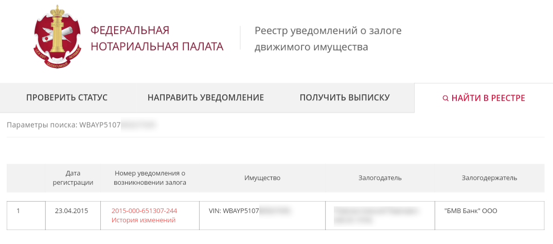 Проверить данные о том, заложено имущество или нет, очень просто. Реестр находится в открытом доступе тут. Проще всего искать по информации о предмете залога. Транспортные средства можно искать по VIN, PIN, номеру шасси или номеру кузова. Также в случае необходимости можно искать и по данным залогодателя, фамилии, имени и отчеству и дате рождения для физлиц, полному наименованию, ОГРН и ИНН для юрлиц.
