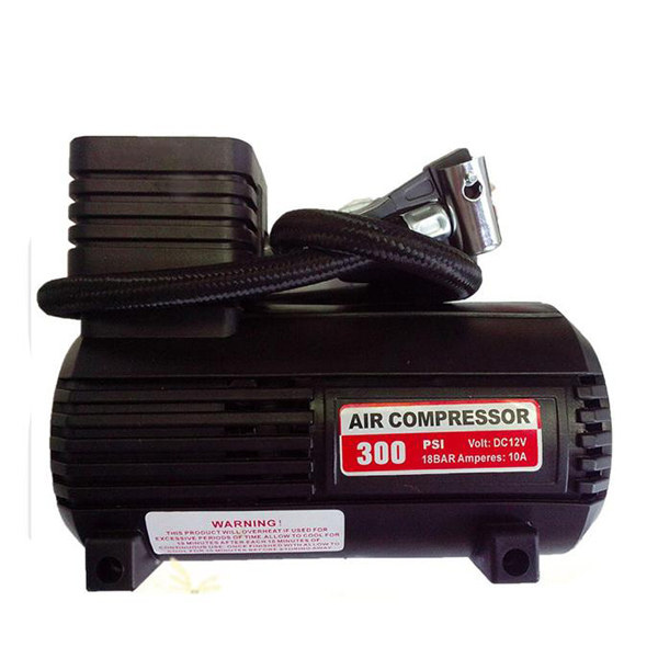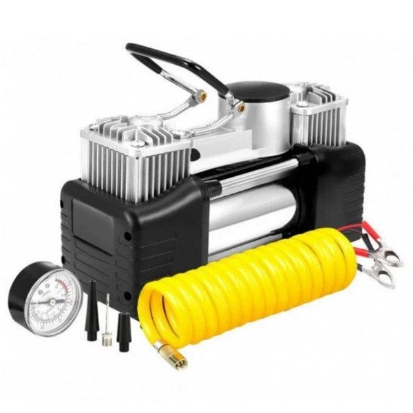 Однопоршневой нагнетательный прибор, подключаемый напрямую к аккумулятору разъемами типа «крокодил». Мощный электромотор помещен в металлический кожух с прорезями, улучшающими отвод тепла. Штампованная стальная платформа на четырех вибропоглощающих ножках обеспечивает устойчивость при работе.