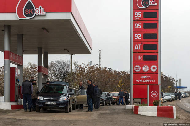 Однако это не останавливает автомобилистов. По словам сотрудника одной из симферопольских заправок, очередь к АЗС образовалась с 8 часов утра, к этому часу вереница авто растянулась на 800 метров. Молодежь пополняет запасы, заправляет баки авто «хотя бы на пару дней». Кто за 50 — с канистрами.