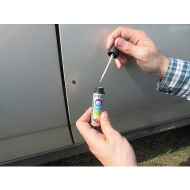 Для этого используйте специальную краску, которую необходимо выбрать сообразно цветовому коду. Некоторые производители машин также выпускают официальные комплекты (бутылки с краской и лаком). В данном случае проще выбрать верный цвет.