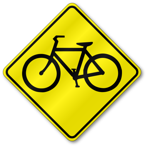 Символ велосипеда, который не находится на велосипедной дорожке, указывает на обозначенный велосипедный маршрут. Водители могут ездить на них как обычно, но символы велосипеда напоминают, что нужно ожидать и искать велосипеды.