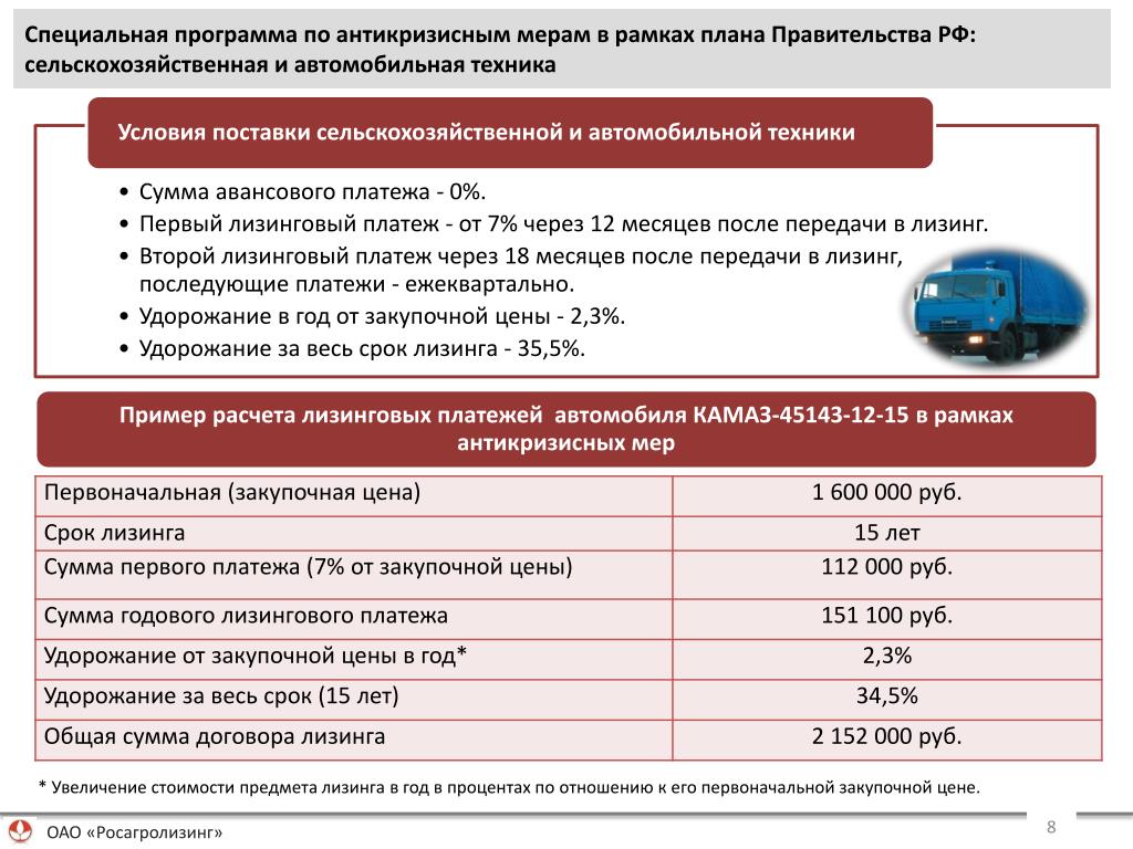 Расчет лизинга