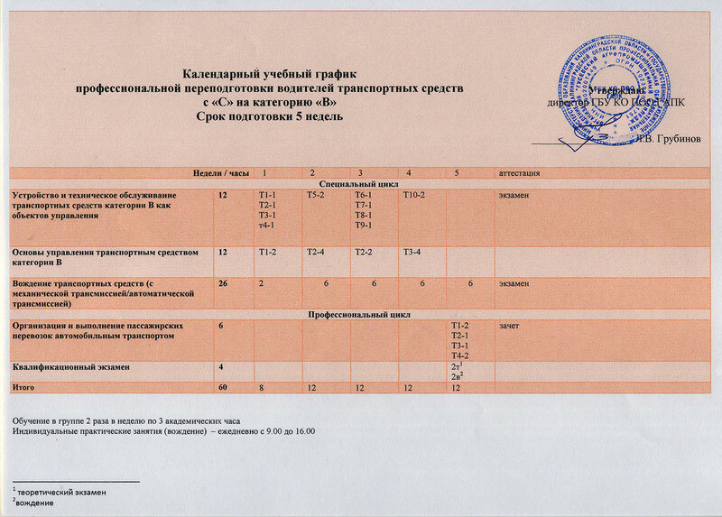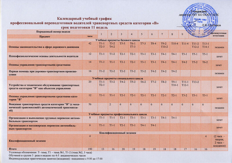 Расписание курсов обучения водителей