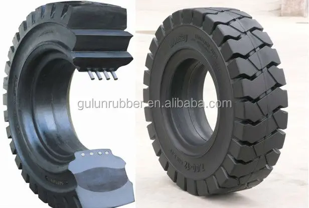 Каждое съемное протекторное кольцо состоит из тонкого внутреннего резинового слоя (ленты) и толстого наружного. Между этими слоями располагается один или несколько рядов обрезиненного металлического корда, который вместе с каркасом обусловливает прочность шины. Число нитей металлического корда в ряду зависит от требуемой прочности и ширины съемного протекторного кольца.