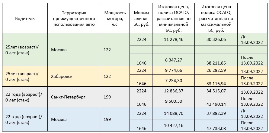 В октябре 2014 года страховые компании получили право самостоятельно устанавливать итоговую базовую ставку, поэтому стоимость страховки в разных компаниях может незначительно отличаться.