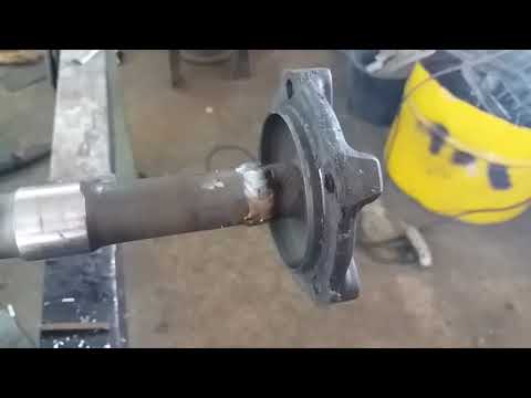 Вам нужно надеть втулку на ось и приварить втулку. Втулку необходимо обрезать под углом с обеих сторон, чтобы максимально увеличить площадь поверхности сварного шва.
