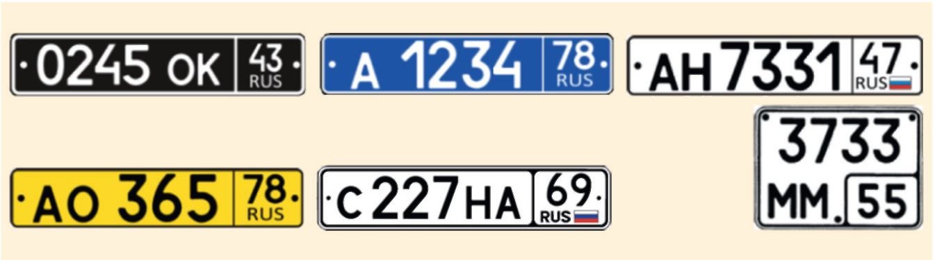 Используемый в настоящее время стандарт номерных знаков имеет пять составляющих, несущих каждая свою информационную нагрузку: